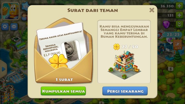 Perlu diketahui bahwa ikon ini hanya akan muncul bila kita mendapatkan daun semanggi kuning dari pemain lain. Maka jika tidak, maka ikon surat tidak akan muncul.